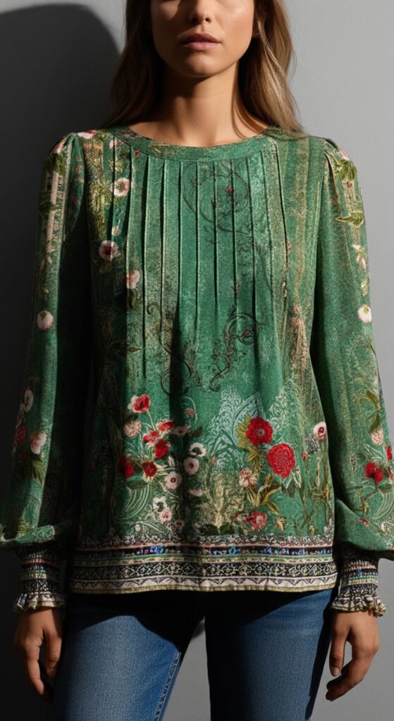 This blouse is designed around two core features: the peplum (babydoll) silhouette and the versatile fabric. The peplum flares gently at the waist, providing a flattering fit that works beautifully on all body types. It instantly elevates the blouse from a simple tee to a dressy blouse.