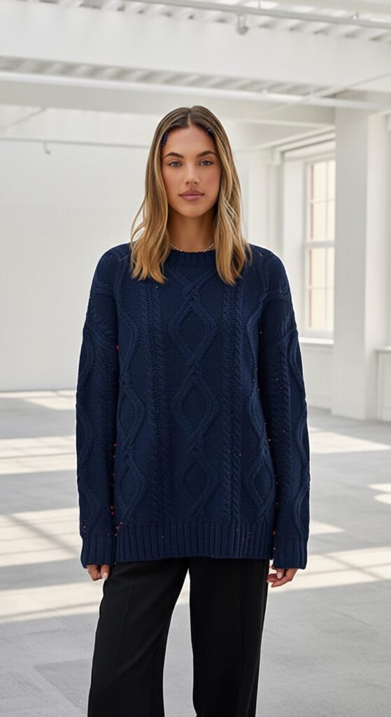 If there is one piece that defines effortless autumn and winter style, it’s the perfect oversized sweater. This chunky cable knit crewneck from Trendy Queen has become a favorite for its ideal length, luxurious texture, and ability to nail the sophisticated ‘Old Money’ aesthetic without the high price tag. It’s truly a winter essential clothing item.