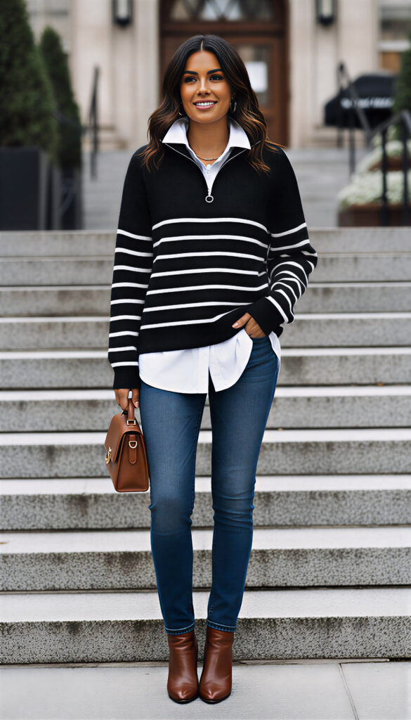 The perfect fall top needs to be comfortable, warm, and structured enough to look intentional. This LILLUSORY Quarter Zip Striped Oversized Sweater is a top choice because it effortlessly hits all three marks. It blends the ease of a casual pullover with the sophistication of a mock turtleneck, making it a versatile Fall Fashion Outfit essential.